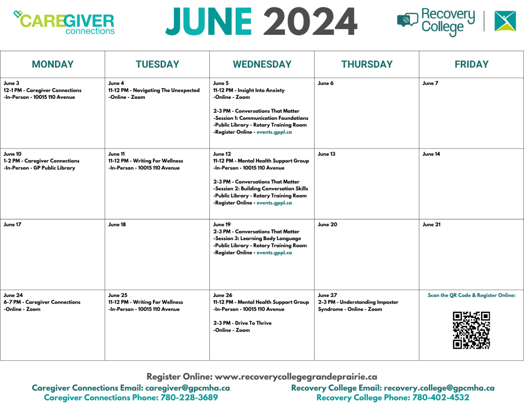 Recovery College June Calendar